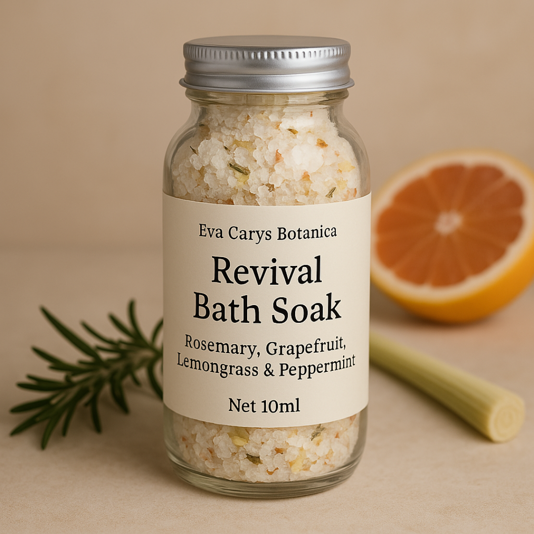 Reignite your energy and focus with Revival; our uplifting bath soak handcrafted in Lincolnshire. Infused with mineral-rich salts and an energising blend of citrus and herbal essential oils, it’s your go-to ritual for refreshing body and mind.